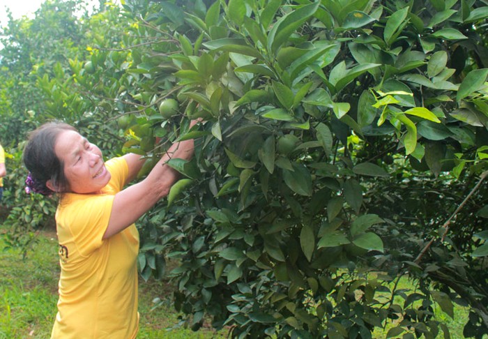 Thành viên Hợp tác xã 3T nông sản Cao Phong chăm sóc cam. (nguồn ảnh: baohoabinh.com.vn)