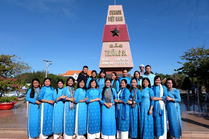 Đoàn công tác Hội LHPN Việt Nam chụp ảnh lưu niệm tại đảo Trường Sa