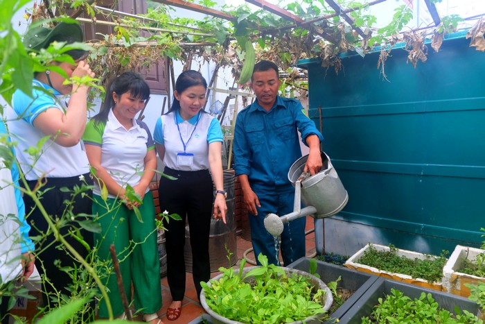 Phó Chủ tịch Hội LHPN Việt Nam Tôn Ngọc Hạnh thăm vườn rau gia đình hội viên, phụ nữ đảo Song Tử Tây
