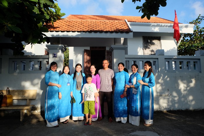 Đoàn công tác chụp hình lưu niệm tại gia đình hội viên phụ nữ trên đảo Trường Sa
