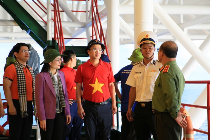 Tại 7 đảo (Song Tử Tây, Đá Thị, Sinh Tồn Đông, Đá Đông B, Trường Sa Đông, Đá Tây B, Trường Sa) và Nhà giàn DK1/2 Phúc Tần, Đoàn công tác đã làm việc, lắng nghe Chỉ huy các đơn vị báo cáo về tình hình thực hiện nhiệm vụ chính trị của cán bộ, chiến sĩ trên các đảo thời gian qua; Lãnh đạo Đoàn phát biểu; tặng quà động viên, chia sẻ về vật chất, tinh thần với cán bộ, chiến sĩ. Trong đó, Đoàn Hội LHPN Việt Nam đã tặng nhiều món quà thiết thực, thể hiện sự quan tâm, chăm lo hậu phương quân đội của tổ chức Hội; thắt chặt thêm tình cảm truyền thống quý báu Quân - Dân cá nước.