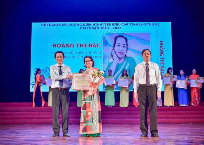 Chị Hoàng Thị Bắc nhận bằng khen của UBND tỉnh tại Hội nghị biểu dương điển hình phụ nữ tiêu biểu cấp tỉnh lần thứ VI, giai đoạn 2018-2023