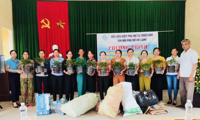 Chị cùng BCH Hội LHPN xã triển khai đến các chi hội xây dựng và nhân rộng mô hình đoạn đường tự quản “Sáng - xanh -sạch - đẹp’’, “Đường hoa yêu thương”, vận động chi hội hạn chế sử dụng nước đóng chai trong các hội nghị, góp phần bảo vệ môi trường. Các chương trình “Ngày hội sống xanh”, “Vì một thôn xóm xanh” đã thu hút trên 1.510 lượt chị em tham gia. Mô hình “Ngôi nhà xanh” thu gom rác thải nhựa gây quỹ đã được xây dựng ở 5/6 chi hội, qua đó tăng cường công tác tuyên truyền vận động hội viên thực hiện phân loại rác thải tại nhà, chi hội đảm nhận việc thu gom rác thải trong thôn góp phần hạn chế ô nhiễm môi trường, thôn xóm ngày càng sạch đẹp.