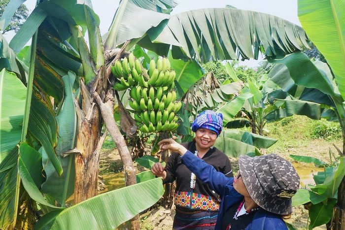 Chị Thương thường xuyên quan tâm, hỗ trợ mô hình trồng chuối lùn của chị em hội viên