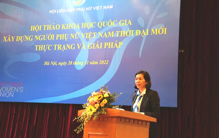 Phát biểu đề dẫn hội thảo, ThS Nguyễn Thị Minh Hương, Phó Chủ tịch Hội LHPN Việt Nam, Phó Chủ tịch Hội đồng Khoa học cơ quan TW Hội LHPN Việt Nam khẳng định, xây dựng người phụ nữ Việt Nam không nằm ngoài định hướng xây dựng con người Việt Nam phát triển toàn diện của Đảng: “Xây dựng con người Việt Nam phát triển toàn diện, có sức khỏe, năng lực, trình độ, có ý thức, trách nhiệm cao đối với bản thân, gia đình, xã hội và Tổ quốc”; “Từng bước vươn lên khắc phục các hạn chế của con người Việt Nam; xây dựng con người Việt Nam thời đại mới, gắn kết chặt chẽ, hài hòa giữa giá trị truyền thống và giá trị hiện đại”. Chỉ thị số 21-CT/TW ngày 20/01/2018 của Ban Bí thư về tiếp tục đẩy mạnh công tác phụ nữ trong tình hình mới tiếp tục xác định nhiệm vụ quan trọng mang tầm chiến lược “Xây dựng người phụ nữ Việt Nam phát triển toàn diện đáp ứng yêu cầu của thời kỳ mới”. Văn kiện Đại hội lần thứ XIII của Đảng cũng khẳng định quan điểm: “Phát huy truyền thống, tiềm năng, thế mạnh và tinh thần làm chủ, khát vọng vươn lên của các tầng lớp phụ nữ. Xây dựng người phụ nữ Việt Nam thời đại mới. Nâng cao chất lượng nguồn nhân lực nữ, đáp ứng yêu cầu phát triển bền vững và hội nhập quốc tế...”.