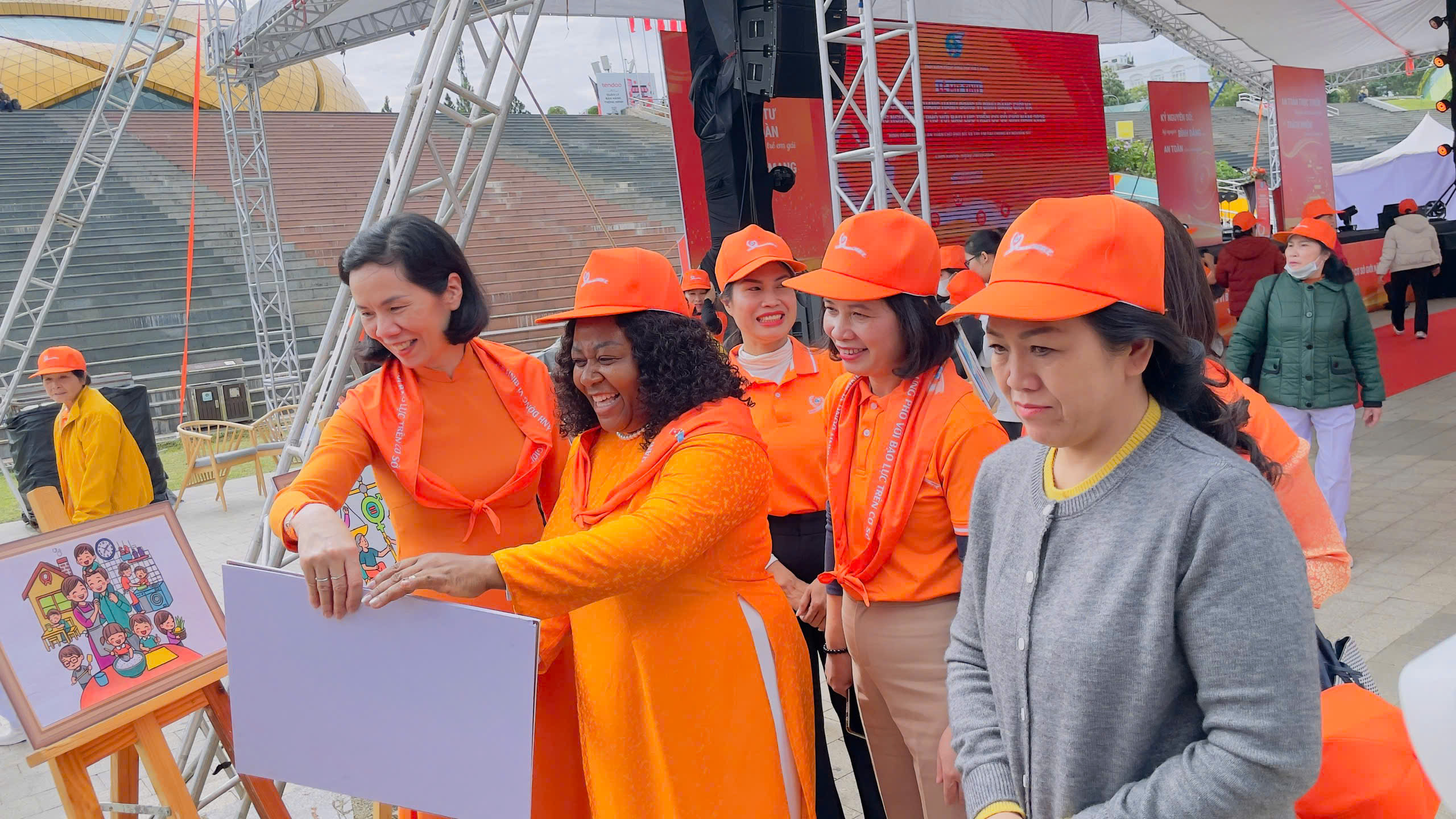 Phó Chủ tịch Hội LHPN Việt Nam Nguyễn Thị Minh Hương, bà Caroline Nyamayemombe, Trưởng Đại diện UN Women và các đại biểu tham gia hoạt động bên lề Lễ phát động