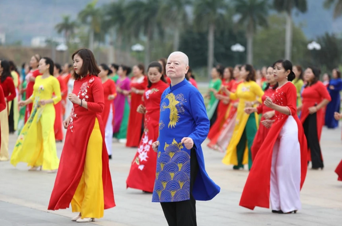 Trong khuôn khổ chương trình, cán bộ, hội viên phụ nữ đã tham gia đồng diễn các bài dân vũ và diễu hành áo dài hưởng ứng tại khu vực quảng trường và một số tuyến đường trên địa bàn thành phố Hòa Bình. Đặc biệt, các tiết mục này còn có sự tham dự của những hội viên danh dự là nam giới. Trong đó có ông Nguyễn Vũ Thái (68 tuổi, trú tại phường Thịnh Lang, thành phố Hòa Bình).