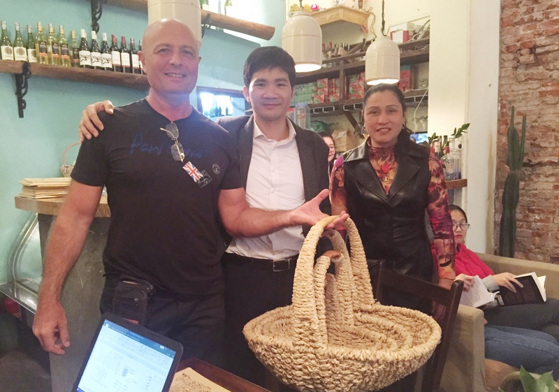 Chị Lương làm việc với đối tác nước ngoài về xuất khẩu sản phẩm từ cỏ tế