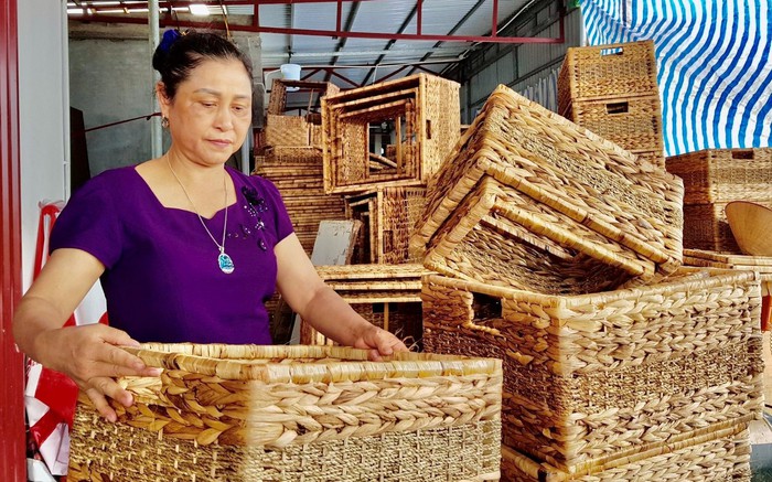 Về thăm khu trưng bày gian hàng của chị Lương, không ít du khách phải trầm trồ về những tác phẩm nghệ thuật được làm từ cỏ tế, một loại cỏ mọc hoang từng có thời "phá đi chẳng xong" hàng trăm năm trước ở thôn Lưu Thượng.
