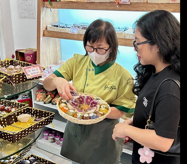 Chị Trịnh Hồng Giang và các sản phẩm trong bộ sưu tập Màu tím hoa ban Chị Trịnh Hồng Giang, Giám đốc Điều hành chuỗi Gia Trịnh Bakery, là thế hệ thứ 3 kế thừa và phát triền các dòng bánh cổ truyền tại Hà Nội và một số đặc sản ẩm thực tại Việt Nam. Chị chia sẻ về hành trình nghiên cứu và đưa những sản phẩm bánh truyền thống làm từ hoa ban chinh phục người tiêu dùng.