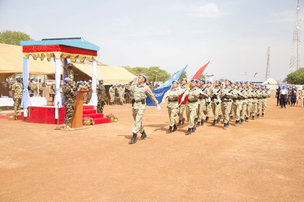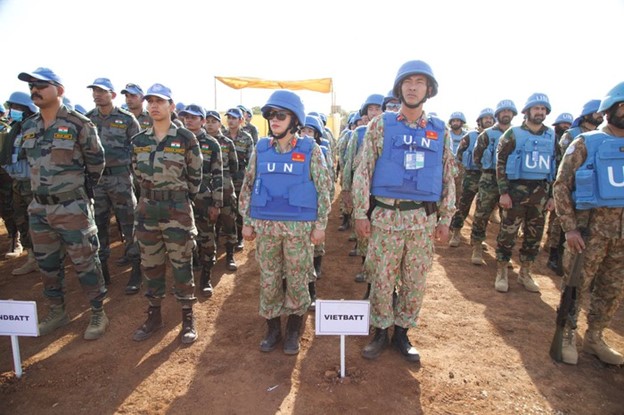 Đội Công binh Việt Nam diễu hành tại Lễ kỷ niệm 1 năm ngày thành lập Phái bộ an ninh lâm thời đa quốc gia tại Khu vực Abyei.