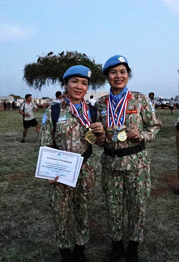 2 nữ quân nhân của Đội công binh Việt Nam giành giải Nhất môn Bắn súng và môn Cầu lông