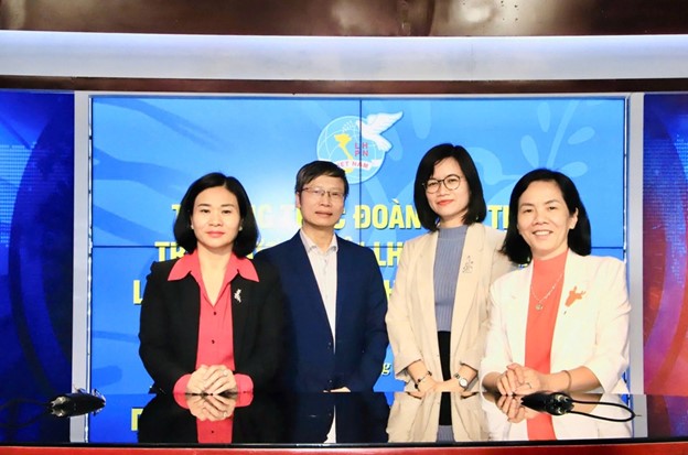 Trong khuôn khổ buổi làm việc, Ủy viên TƯ Đảng, Chủ tịch Hội LHPN Việt Nam Nguyễn Thị Tuyến (bìa trái), Phó Chủ tịch Hội LHPN Việt Nam Nguyễn Thị Minh Hương (bìa phải), Chánh Văn phòng TƯ Hội LHPN Việt Nam Phạm Thị Hương Giang và Phó Tổng biên tập Phụ trách Báo Phụ nữ Việt Nam Phí Quốc Thuyên thăm trường quay của Báo Phụ nữ Việt Nam