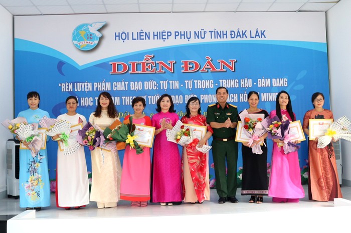 Tại Diễn đàn, Hội LHPN tỉnh đã khen thưởng 8 tập thể, 10 cá nhân có nhiều đóng góp trong việc tổ chức, triển khai, thực hiện Chỉ thị số 05-CT/TW về “Đẩy mạnh học tập và làm theo tư tưởng, đạo đức, phong cách Hồ Chí Minh” giai đoạn 2016- 2021.