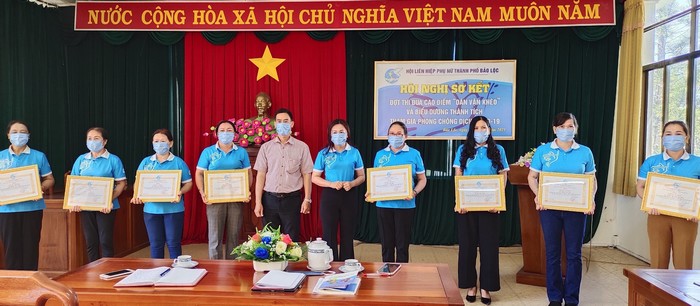 "Tổ phụ nữ sẵn sàng" ở thành phố Bảo Lộc Mô hình “Tổ phụ nữ sẵn sàng” được triển khai ở thành phố Bảo Lộc với 66 thành viên là cán bộ hội viên phụ nữ thuộc 11 xã. Theo bà Nguyễn Bùi Thị Minh Hiền – Chủ tịch Hội LHPN thành phố: “Tổ phụ nữ sẵn sàng” đã phát huy xuất sắc vai trò, nhiệm vụ với phương châm “chống dịch như chống giặc“, các chị em trong tổ không quản khó khăn trở thành những chiến sĩ, điểm tựa vững chắc cùng với nhân dân trên địa bàn quyết tâm bảo vệ vùng xanh - vùng an toàn không có dịch.