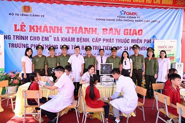 Để hỗ trợ các em học sinh có sức khoẻ tốt, yên tâm học tập và sinh hoạt hàng ngày, nhân dịp này, đoàn công tác đã tổ chức khám, chữa bệnh, cấp phát thuốc miễn phí cho các em học sinh của điểm trường.