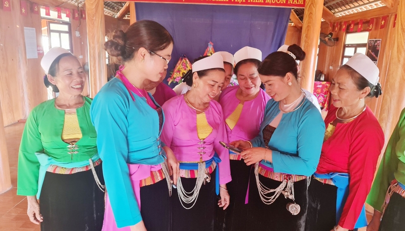 Tổ phụ nữ cao tuổi xóm Chiềng Vang,xã Tân Lập, huyện Lạc Sơn, tỉnh Hòa Bình gìn giữ bản sắc văn hóa truyền thống
