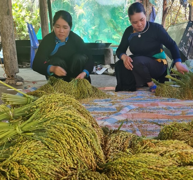 Nghề làm cốm - một món ăn dân dã trước đây vốn chỉ xuất hiện trong những ngày lễ mừng cơm mới của người Tày thôn Na Lo, xã Tà Chải.