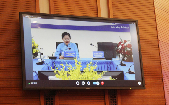 Phó Chủ tịch Hội LHPN Việt Nam Trần Thị Hương phát biểu tại điểm cầu Trung ương