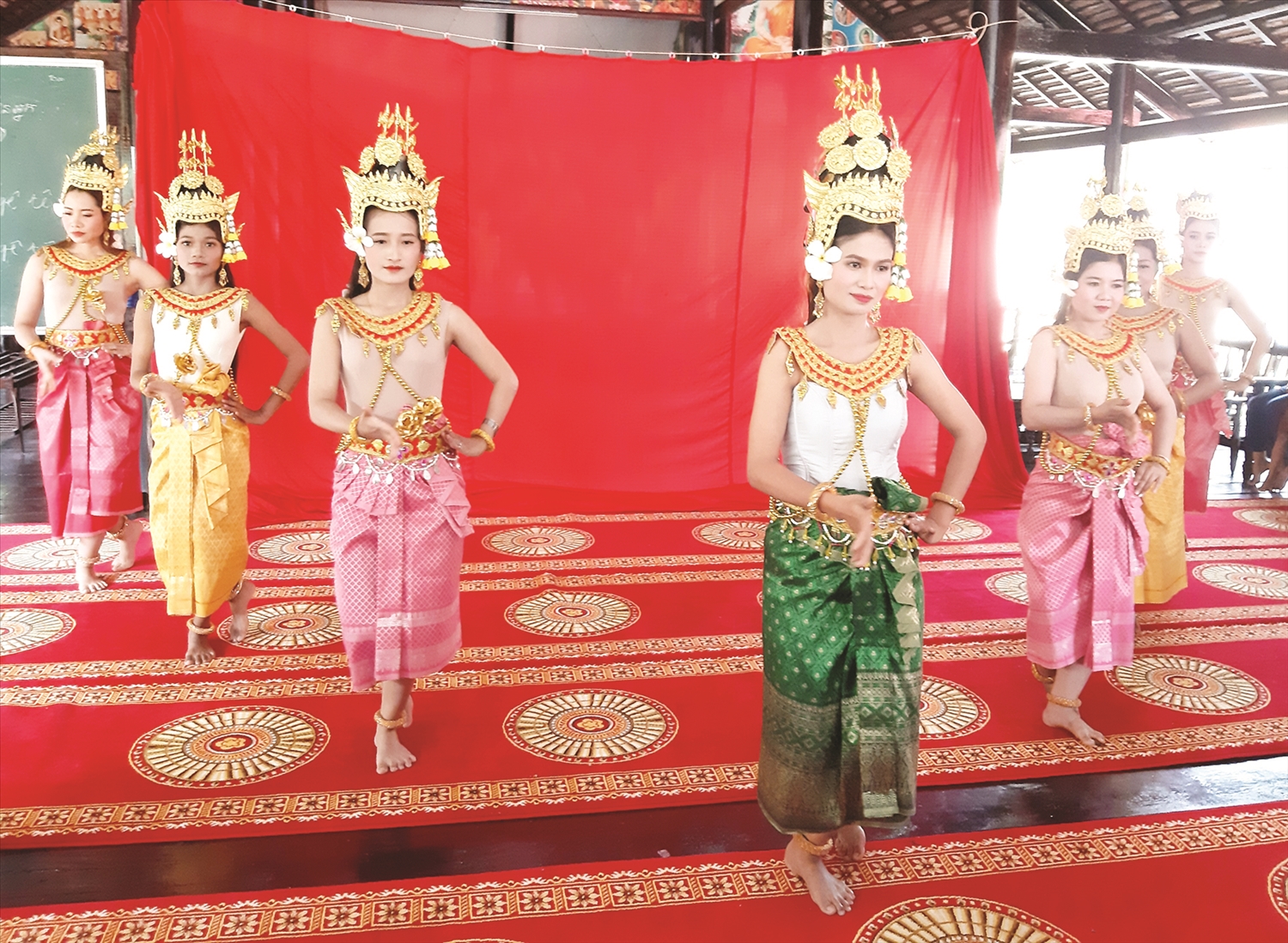 Thiếu nữ Khmer chùa Xiêm Cán trong điệu múa Apsara mượt mà, uyển chuyển
