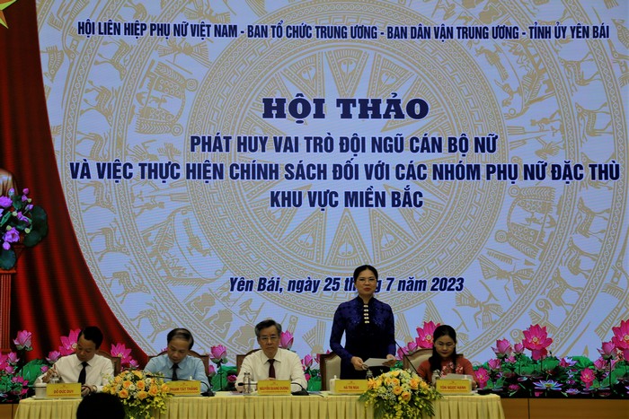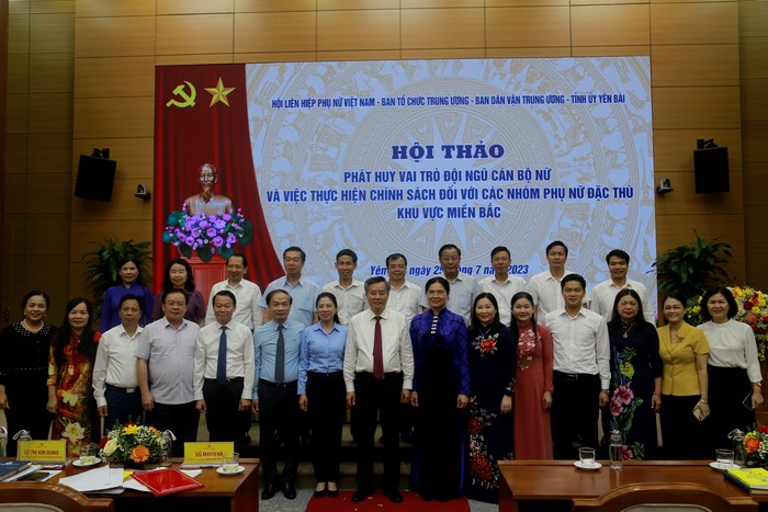 Chủ trì hội thảo gồm các đồng chí: Phạm Tất Thắng, Ủy viên BCH TW Đảng, Phó Trưởng ban Thường trực Ban Dân vận TW; Nguyễn Quang Dương, Ủy viên BCH TW Đảng, Phó Trưởng ban Tổ chức TW; Hà Thị Nga, Ủy viên BCH TW Đảng, Chủ tịch Hội LHPN Việt Nam; Đỗ Đức Duy, Ủy viên BCH TW Đảng, Bí thư Tỉnh ủy, Trưởng đoàn đại biểu Quốc hội tỉnh Yên Bái; Tôn Ngọc Hạnh, Ủy viên dự khuyết BCH TW Đảng, Phó Chủ tịch Hội LHPN Việt Nam. Hội thảo diễn ra với sự tham dự của lãnh đạo UBND, Ban Dân vận, Ban Tổ chức, Ban Dân tộc và Hội LHPN 25 tỉnh/thành phía Bắc.