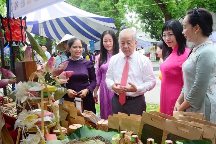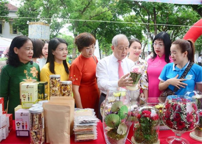 Đại biểu tham quan các gian hàng tại Ngày hội Đến dự ngày hội có Giám đốc Trung tâm Phụ nữ và Phát triển Trung ương Hội LHPN Việt Nam Dương Thị Ngọc Linh; Phó Bí thư Thường trực Tỉnh uỷ Phan Ngọc Thọ; UVTV Tỉnh uỷ, Phó Chủ tịch Thường trực UBND tỉnh Nguyễn Thanh Bình; UVTV Tỉnh uỷ, Trưởng Ban Dân vận Tỉnh uỷ Nguyễn Chí Tài; lãnh đạo Hội LHPN tỉnh; cùng đông đảo cán bộ, hội viên phụ nữ các huyện, thị xã, thành phố Huế.