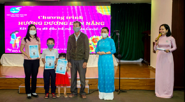 Tại chương trình trình "Hướng dương đón nắng" kết nối mẹ đỡ đầu với trẻ em mồ côi do dịch Covid-19, Hội LHPN tỉnh cũng đã kết nối các tổ chức, cá nhân trao tặng 19 suất quà cho 19 em, mỗi suất quà trị giá 1,2 triệu đồng gồm 500.000 đồng tiền mặt cùng bánh, sữa, quần áo mới, tổng số tiền trao tặng gần 23 triệu đồng.