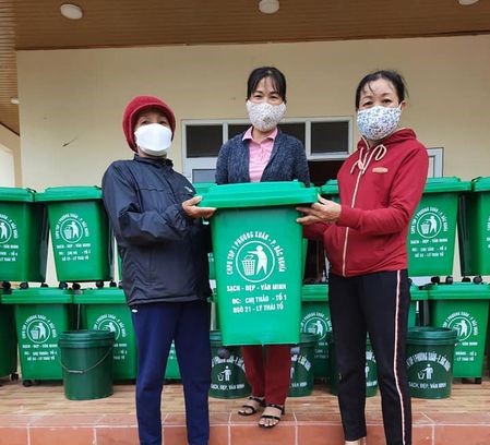Hội phụ nữ trao thùng rác nhằm bảo vệ môi trường tới hội viên tại xã Bắc Nghĩa