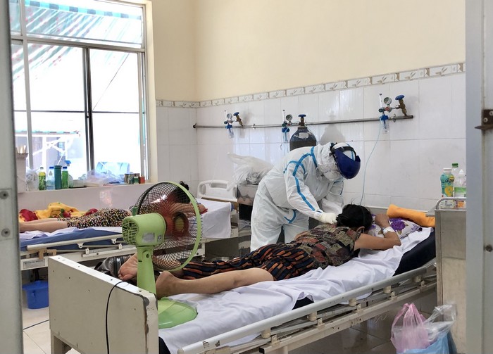 Bác sĩ đang điều trị cho bệnh nhân tại Bệnh viện Điều trị bệnh nhân Covid - 19 tỉnh (cơ sở 2)