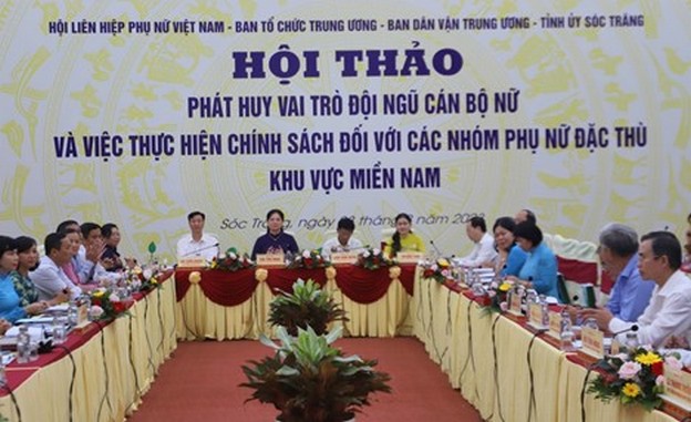 Hội thảo "Phát huy vai trò đội ngũ cán bộ nữ và việc thực hiện chính sách đối với các nhóm phụ nữ đặc thù" khu vực miền Nam do Ban Dân vận Trung ương, Ban Tổ chức Trung ương, Đảng Đoàn TƯ Hội LHPN Việt Nam phối hợp với Tỉnh ủy Sóc Trăng tổ chức