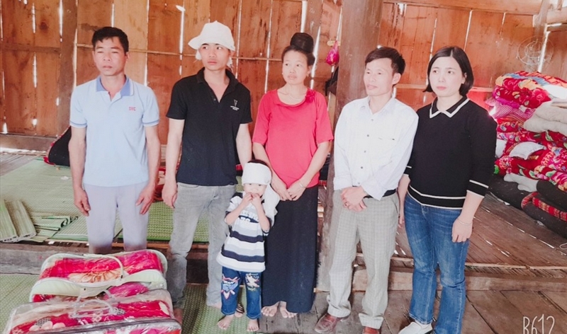 Gia đình học sinh cũ có vợ mất trong lúc sinh hoàn cảnh khó khăn được cô giáo Nguyễn Thị Hoa kêu gọi hỗ trợ năm 2019.