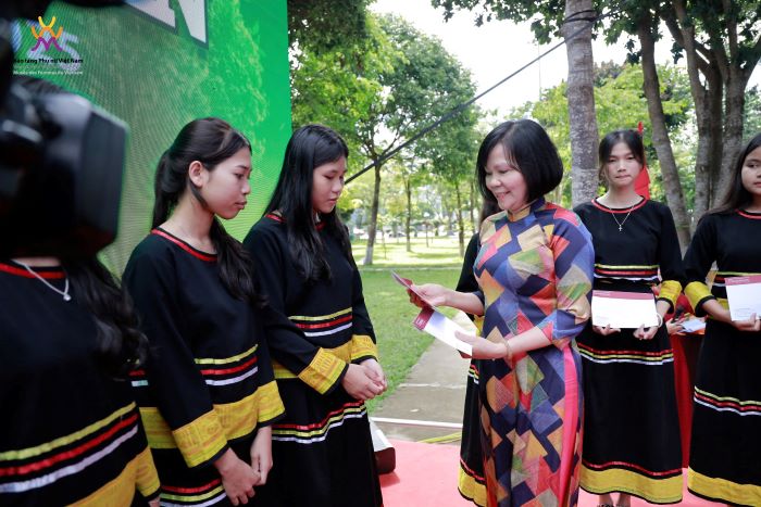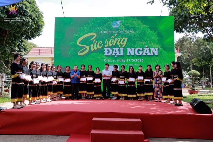 Tại đây, 35 suất học bổng, mỗi suất trị giá 1 triệu đồng đã được trao tặng cho học sinh dân tộc thiểu số vượt khó, tiếp thêm động lực để các em vững bước trên con đường học tập. Cùng ngày, Triển lãm “Sức sống đại ngàn” cũng được khai mạc, trưng bày các hình ảnh, video, câu chuyện đời thực của phụ nữ và trẻ em tại các xã thuộc huyện Ia Pa - những “mạch sống” vươn lên từ bóng tối định kiến và khó khăn, lan tỏa sự thay đổi tích cực trong cộng đồng.