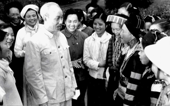 Bác Hồ với đại biểu phụ nữ các dân tộc Việt Bắc năm 1959. Ảnh tư liệu