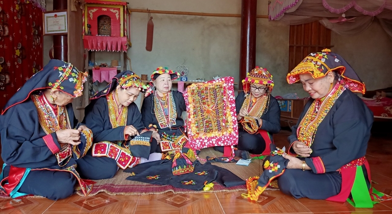 Nhiều phụ nữ dân tộc Dao ở thị trấn Tây Yên Tử có thêm thu nhập, nâng cao đời sống từ nghề thêu ren