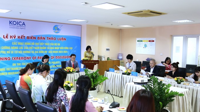 Phát biểu tại Lễ ký kết, Phó Chủ tịch Hội LHPN Việt Nam Nguyễn Thị Minh Hương nhận định: “Đây là hoạt động hỗ trợ có ý nghĩa trong bối cảnh gia tăng người di cư trong nước và quốc tế sau việc dỡ bỏ các hạn chế xã hội và mở lại biên giới quốc tế vào tháng 3 năm 2022. Số lượng lao động di cư ra nước ngoài theo hợp đồng có thời hạn đã đạt mức trước đại dịch là khoảng 150.000 người. Một số lượng đáng kể phụ nữ di cư trở về từ các quốc gia khác với nhiều thách thức hơn do tác động đa dạng của Covid-19. Hơn 30.000 người di cư đã hồi hương về Việt Nam”.