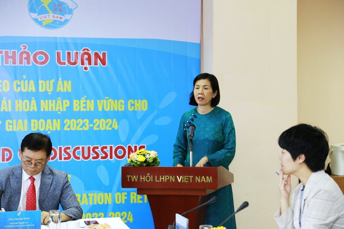 Tóm tắt kết quả Dự án, bà Đàm Thị Vân Thoa, Trưởng ban Chính sách – Luật pháp, TW Hội LHPN Việt Nam cho biết, Dự án “Tăng cường năng lực cho các cơ quan Việt Nam nhằm hỗ trợ tái hoà nhập bền vững cho phụ nữ di cư hồi hương và gia đình họ” do KOICA tài trợ thông qua hỗ trợ kỹ thuật của IOM được triển khai thực hiện từ năm 2020 đến nay tại 5 tỉnh/thành phố: Hà Nội, Hải Phòng, Hải Dương, Cần Thơ, Hậu Giang với mục tiêu “Hỗ trợ phụ nữ Việt Nam di cư trở về và thành viên gia đình họ được tiếp cận với các dịch vụ hỗ trợ để tái hòa nhập bền vững” đã đạt nhiều kết quả nổi bật.