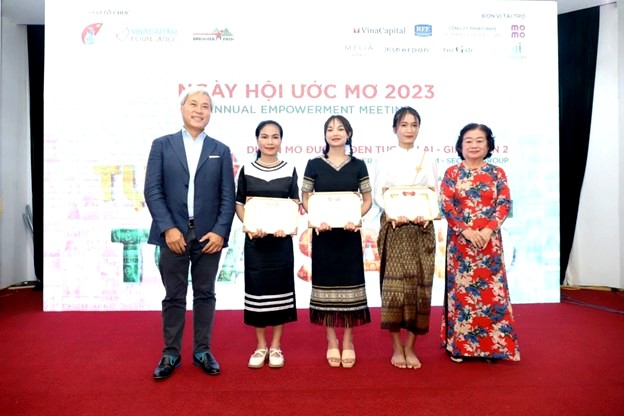 Phó Chủ tịch nước Võ Thị Ánh Xuân, nguyên Phó Chủ tịch nước Trương Mỹ Hoa trao quà cho các nữ sinh dân tộc thiểu số thuộc dự án "Mở đường đến tương lai" của Quỹ học bổng Vừ A Dính Tối 17/8, tại Hà Nội, Quỹ Học bổng Vừ A Dính và tổ chức phi lợi nhuận VinaCapital Foundation (VCF) đã tổ chức Gala Dinner, gặp mặt tuyên dương 49 nữ sinh dân tộc thiểu số trong dự án Mở đường đến tương lai.