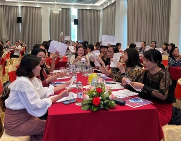 Các học viên trao đổi, thảo luận tại lớp tập huấn Trong 2 ngày tập huấn, hơn 60 đại biểu đến từ 20 tỉnh/thành phố tham gia tập huấn trực tiếp và 80 cán bộ của 19 tỉnh, thành phố tham gia tập huấn trực tuyến đã được cung cấp thông tin, cập nhật và hướng dẫn triển khai các nội dung về công tác giám sát, phản biện xã hội; phổ biến, giáo dục pháp luật; giải quyết đơn thư, quy trình lên tiếng tham gia giải quyết vụ việc bạo lực, xâm hại phụ nữ và chuyên đề đối thoại chính sách cấp xã, cụm thôn bản trong khuôn khổ Dự án 8 "Thực hiện bình đẳng giới và giải quyết những vấn đề cấp thiết đối với phụ nữ, trẻ em" thuộc Chương trình MTQG vùng đồng bào dân tộc thiểu số và miền núi, giai đoạn 2021 - 2030.