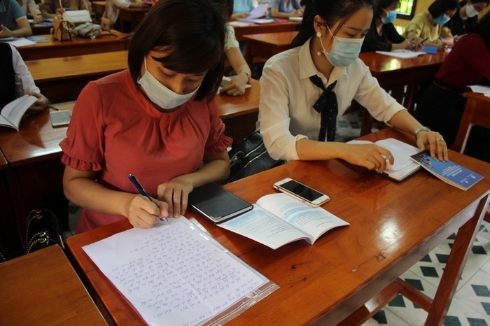 Học viên tham gia lớp tập huấn thực hành viết chương trình hành động tại tổ