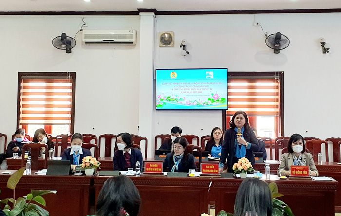 Hiện nay, Thái Nguyên có 155.898 đoàn viên công đoàn, trong đó, nữ đoàn viên là 99.289 người (chiếm trên 60%). Toàn tỉnh có 1 ban nữ công nghiệp vụ, 1.037 ban nữ công quần chúng. Thời gian qua, các cấp công đoàn trong tỉnh đã tổ chức nhiều hoạt động chăm lo, bảo vệ quyền, lợi ích hợp pháp, chính đáng của nữ công nhân, viên chức, lao động (CNVCLĐ). Cụ thể: trên 70.000 nữ CNVCLĐ được tập huấn, học tập nâng cao trình độ; trên 3.000 đề tài, sáng kiến được công nhận; có 700 CNVCLĐ được tiếp cận vốn vay, cải thiện đời sống, trong đó có 60% là nữ.