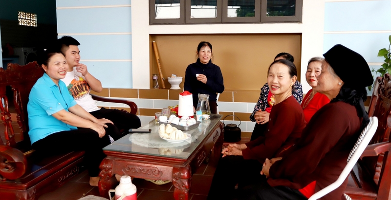 Chị Tuyết (áo xanh) và bà con tại địa phương
