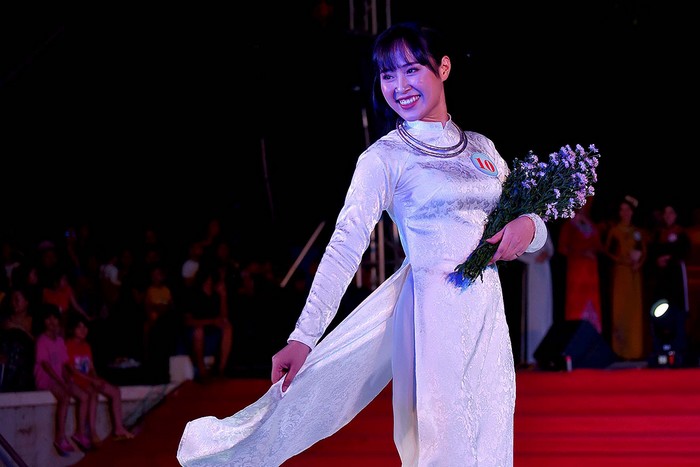Các thí sinh đã đem đến hội thi nhiều mẫu áo dài với nhiều chất liệu, màu sắc khác nhau. Ảnh: Đ.T