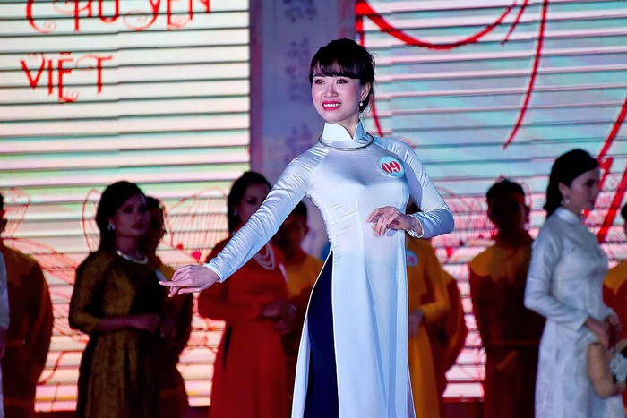 Thí sinh Bùi Thị Bích Nguyệt giành giải nhất Hội thi "Duyên dáng áo dài xưa và nay"