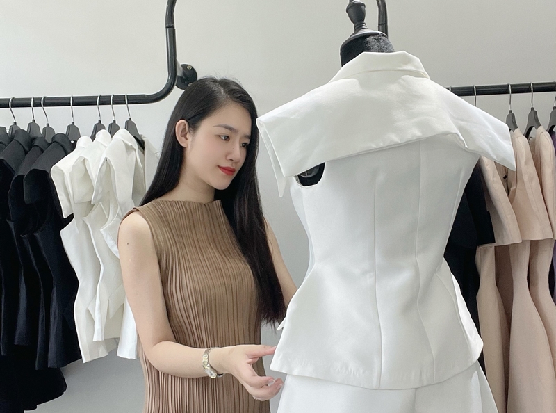 DIệu Linh thường làm mẫu cho sản phẩm của mình