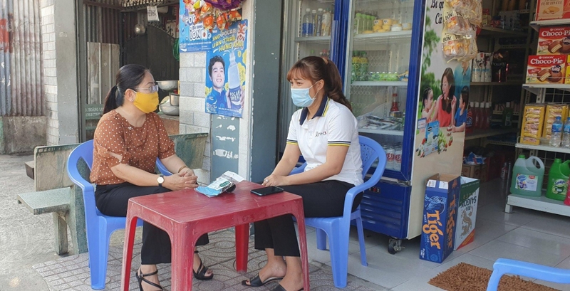 Hoạt động Hội được chị Nguyễn Thị Lan (bên trái) triển khai thực tiễn tại các khu dân cư Đã ngoài 50 tuổi, nhưng lúc nào Chủ tịch Hội LHPN Quận Gò Vấp Nguyễn Thị Lan cũng nhanh nhẹn, xốc vác. Sáng sớm, chị đã có mặt tại cơ quan để đón các nhà hảo tâm. Vừa tiễn khách, chị đã lại cùng chị em Hội LHPN quận tiếp nhận 6 tạ rau xanh, bí đỏ. Quay qua quay lại, đã thấy chị vào bếp cùng chị em gọt bí, rang gạo, nấu cháo bí đỏ mang tặng trẻ nhiễm COVID-19 đang ở các điểm thu dung điều trị trên địa bàn… Đó là “một ngày như mọi ngày” của chị Lan và chị em tập thể Hội LHPN Quận Gò Vấp trong hơn bốn tháng qua.