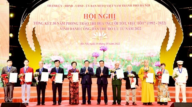 Bà Đặng Thị Cuối (thứ 2 bên phải) được vinh danh là Công dân Thủ đô ưu tú 2022