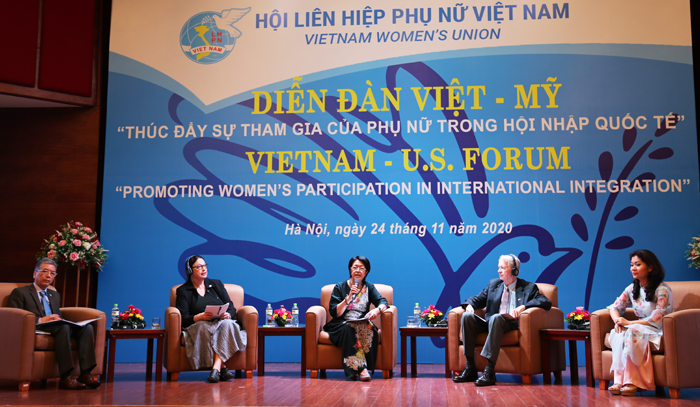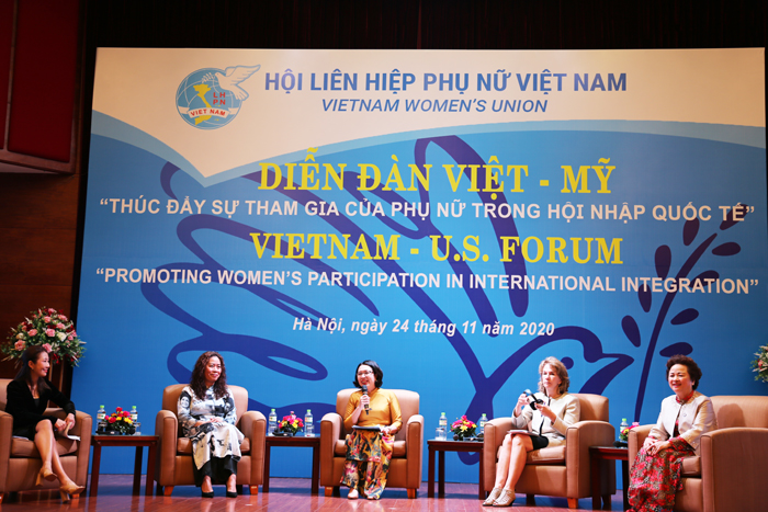 Hướng tới mục đích tăng cường giao lưu nhân dân Việt-Mỹ và hỗ trợ phụ nữ hội nhập quốc tế tích cực, hiệu quả trên các lĩnh vực, Diễn đàn Việt – Mỹ đã diễn ra với hai phiên thảo luận quan trọng. Trong đó, phiên “Hỗ trợ phụ nữ hội nhập kinh tế quốc tế” đi sâu phân tích, chỉ ra các thách thức và cơ hội đối với lao động nữ và doanh nghiệp nữ trong quá trình hội nhập kinh tế quốc tế, đặc biệt trong bối cảnh các xu thế đối lập giữa hợp tác và cạnh tranh quốc tế, cách mạng công nghiệp 4.0, ứng phó và hồi phục sau đại dịch Covid 19; tăng cường ứng dụng công nghệ thông tin và bảo vệ môi trường. Chủ đề của phiên thảo luận này cũng có ý nghĩa đặc biệt nhằm làm sâu sắc thêm vấn để về “Vai trò của phụ nữ trong xây dựng một Cộng đồng ASEAN gắn kết, năng động, bền vững và bao trùm trong thế giới hậu COVID-19” – một vấn đề được mổ xẻ trong Hội nghị Thượng đỉnh Lãnh đạo nữ ASEAN lần đầu tiên được tổ chức tại Hội nghị cấp cao ASEAN 37 vừa qua.