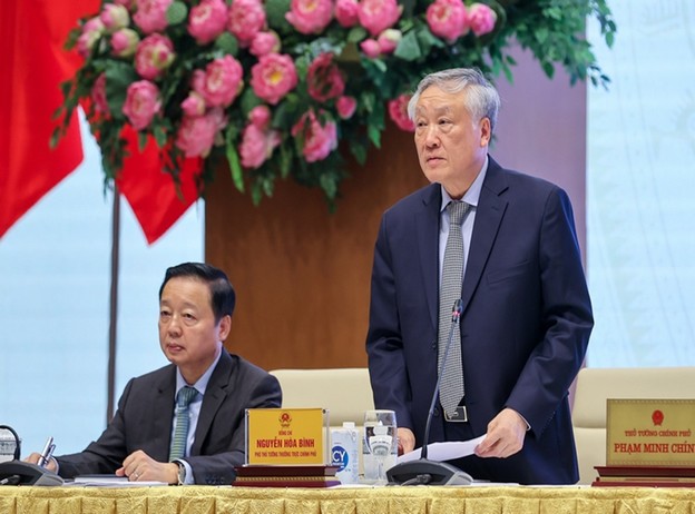 Phó Thủ tướng Thường trực Chính phủ Nguyễn Hòa Bình phát biểu điều hành cuộc gặp mặt - Ảnh VGP/Nhật Bắc
