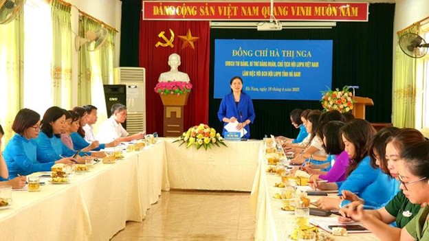 Ngày 19/4, Đoàn công tác của TƯ Hội LHPN Việt Nam do Uỷ viên Trung ương Đảng, Bí thư Đảng Đoàn, Chủ tịch Hội LHPN Việt Nam Hà Thị Nga làm trưởng đoàn đã về làm việc với Ban Chấp hành Hội LHPN tỉnh Hà Nam về tình hình thực hiện nhiệm vụ công tác Hội và phong trào phụ nữ của tỉnh.