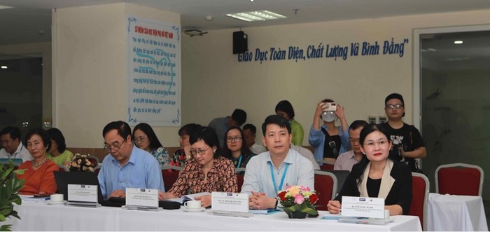 Phó Chủ tịch Hội LHPN Việt Nam Tôn Ngọc Hạnh cùng các đại biểu, chuyên gia, nhà khoa học bên lề hội thảo Chương trình do Học viện Phụ nữ Việt Nam phối hợp với Tổ chức Nhân dân Úc vì y tế, giáo dục và phát triển hải ngoại tại Việt Nam (APHEDA) tổ chức.